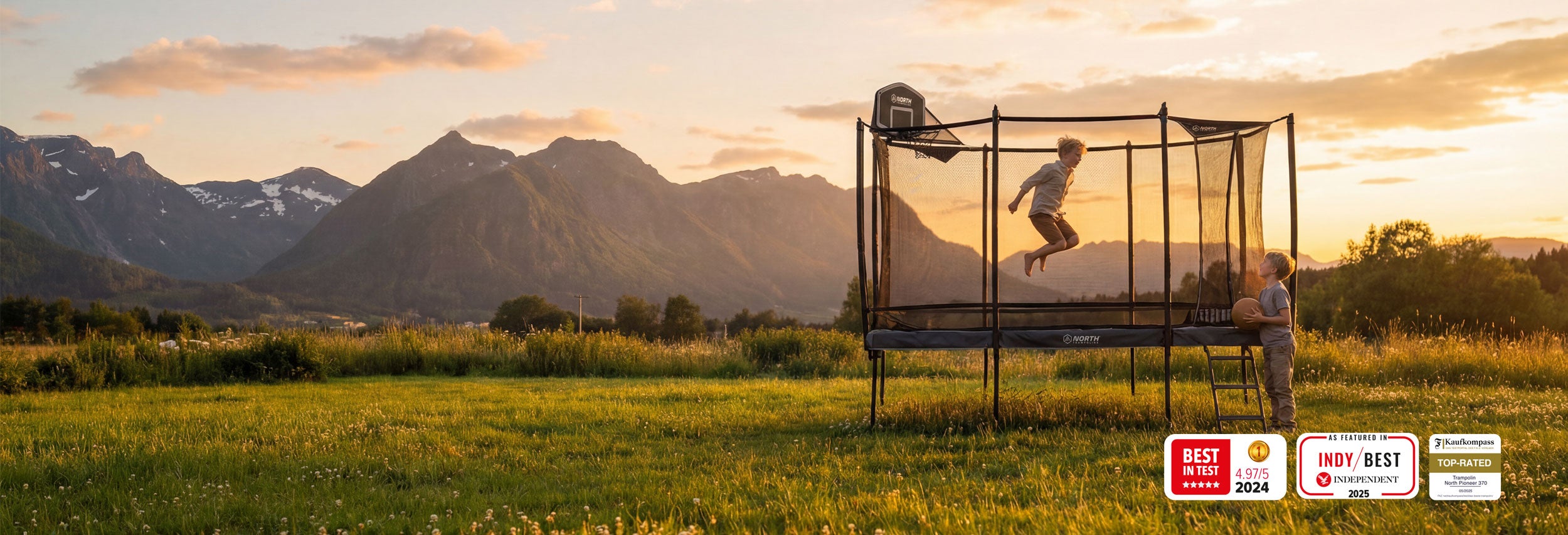 Unsere ovalen Trampoline heißen North Pioneer und North Legend.