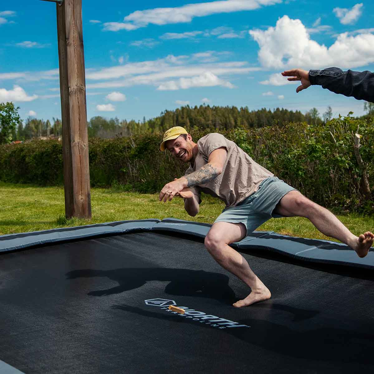 Unsere ovalen Trampoline heißen North Pioneer und North Legend.