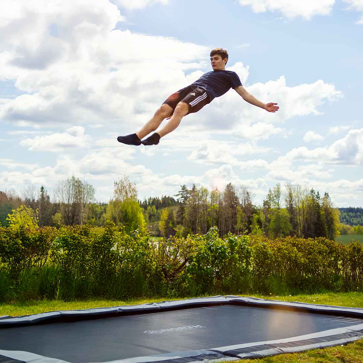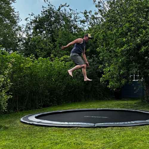 - Kinder können länger als auf anderen In-Ground-Trampolinen springen, da Ermüdungserscheinungen dank der Luftzirkulation erheblich gemildert werden