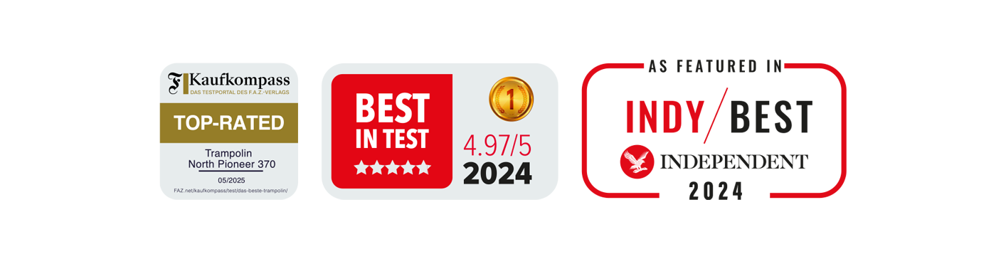 North Trampoline wurden zwischen 2015 und 2025 in mehreren unabhängigen europäischen Tests zu den besten Trampolinen gekürt.